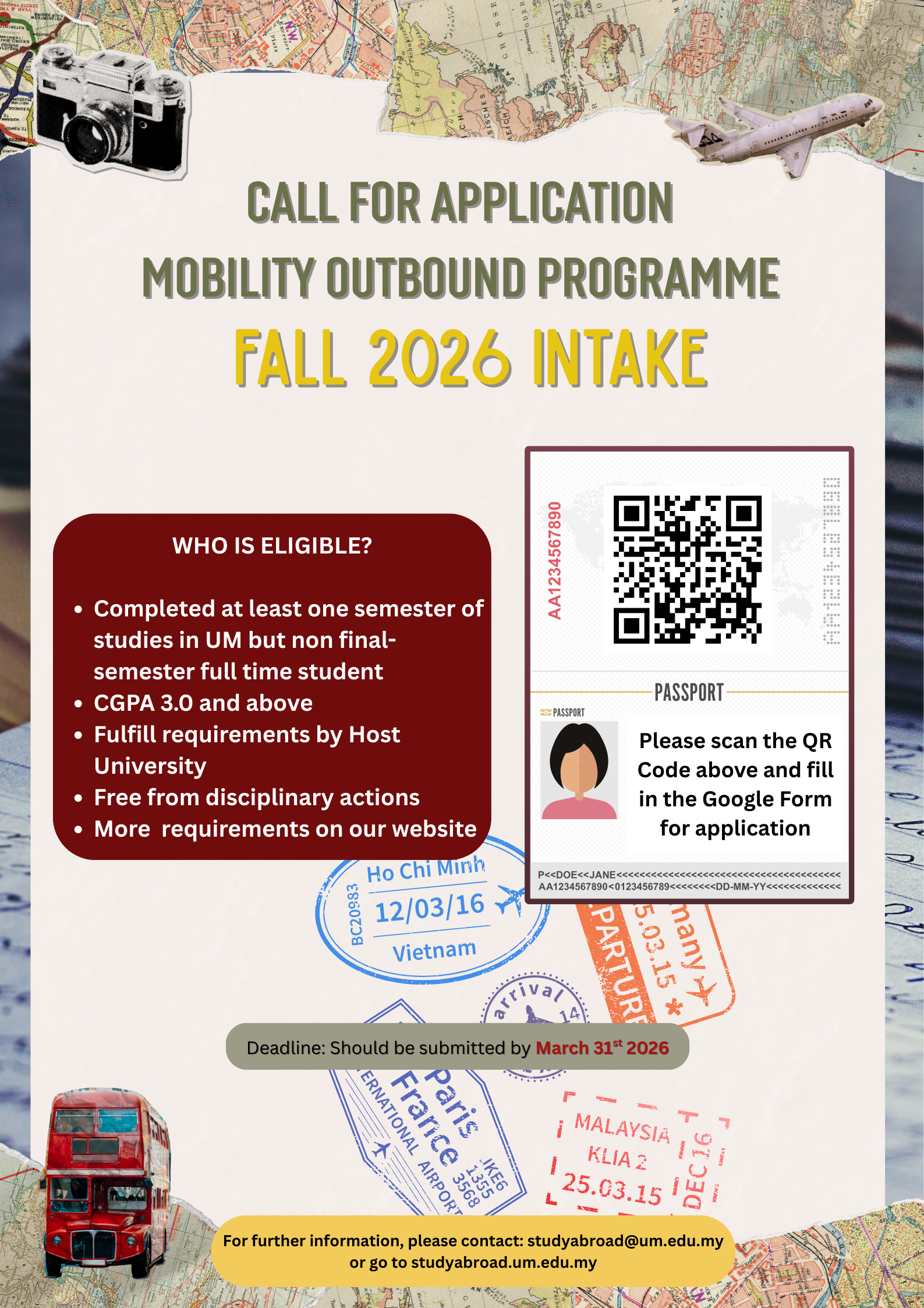 The Application Deadline for the Outbound Mobility Programme – Fall Semester is until 31th March.
